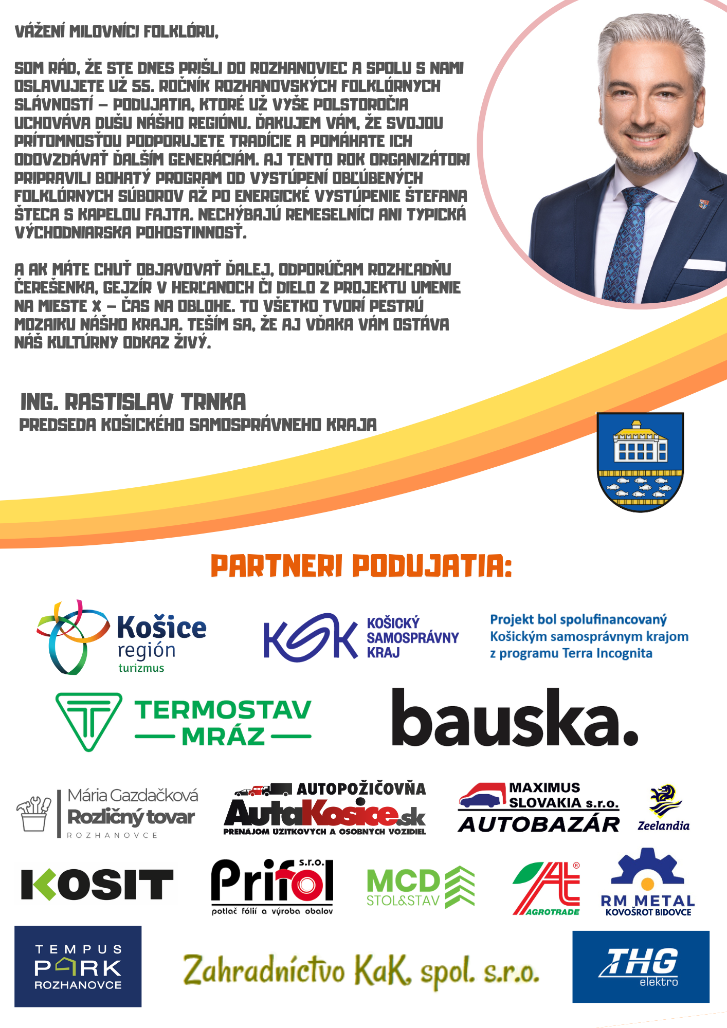 Pozvánka na 55. ročník "Rozhanovských folklórnych slávnosti" v susednej obci Rozhanovce, ktoré sa uskutočnia v sobotu 7.júna 2025.
